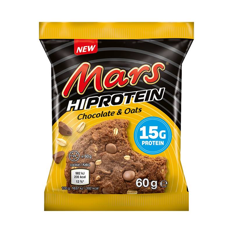 Le Mars Hi-Protein Cookie Chocolate & Oats est la collation parfaite pour allier plaisir et nutrition. Ce biscuit allie la richesse du chocolat Mars, avec sa caramel signature et sa nougat tendre, à l’avoine pour offrir une texture légèrement croquante et une expérience gustative unique. Avec 15 g de protéines par biscuit, il vous aide à satisfaire vos envies tout en apportant un soutien à vos muscles après l’entraînement ou au cours de votre journée active.